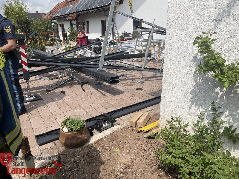 Carport eingestürzt und Person eingeklemmt