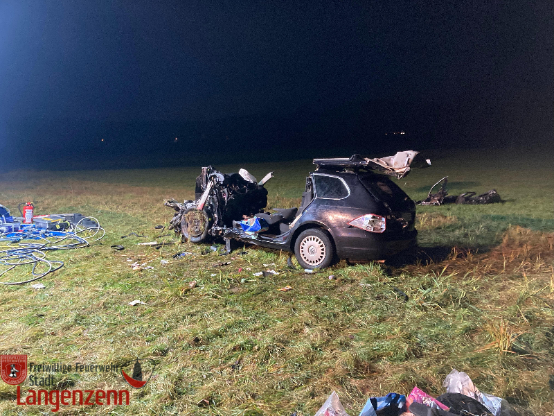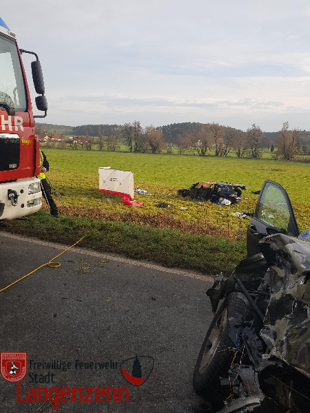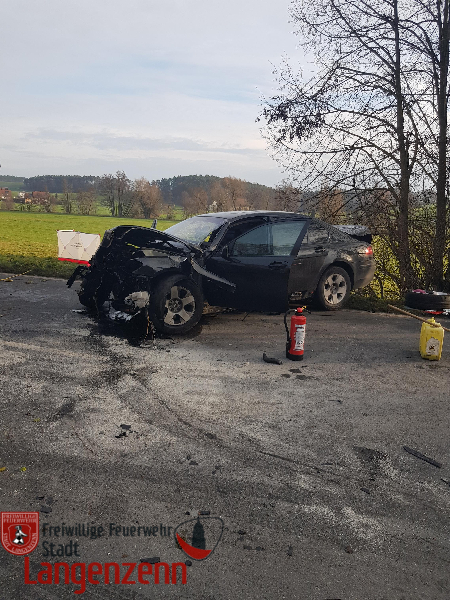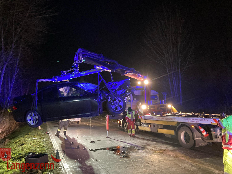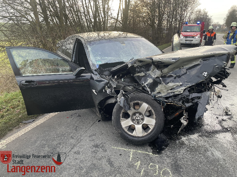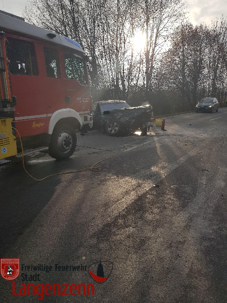 Verkehrsunfall mit zwei PKW, Person eingeklemmt