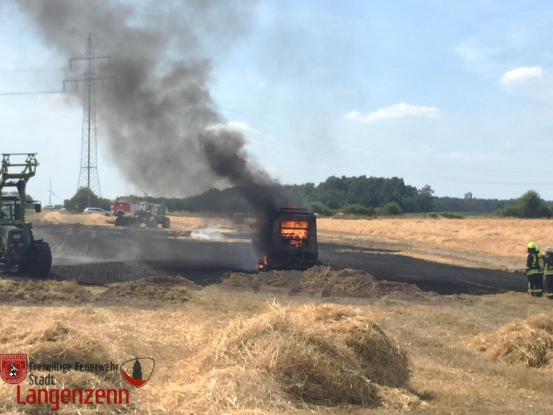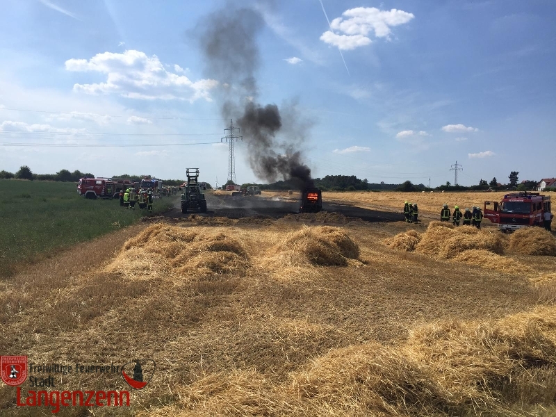 Bei der Ankunft stellte sich heraus, das es eine brennende Ballenpresse war. Hier waren aber schon die Kollegen der Feuerwehr Hagenbüchach vor Ort.