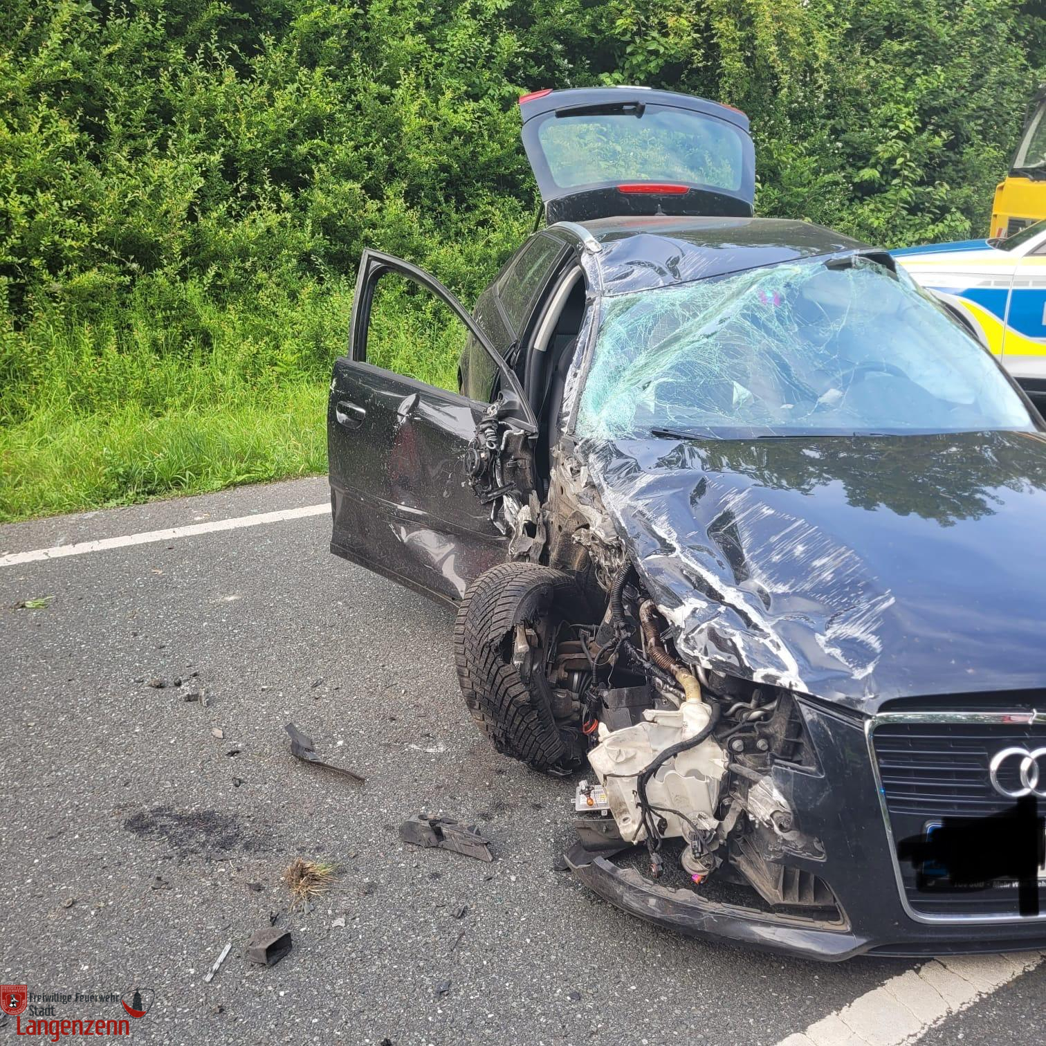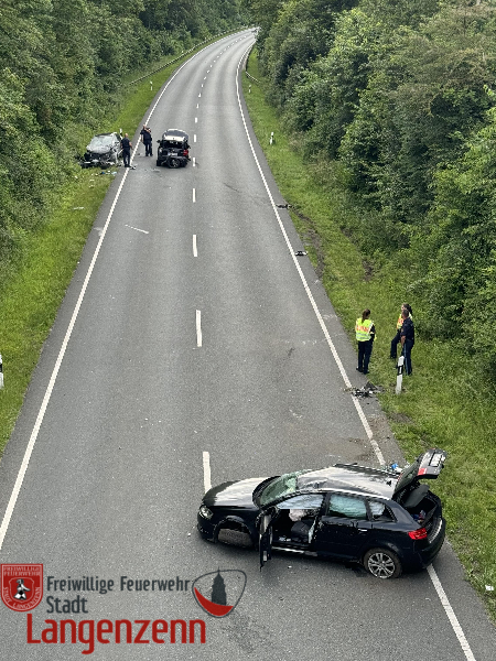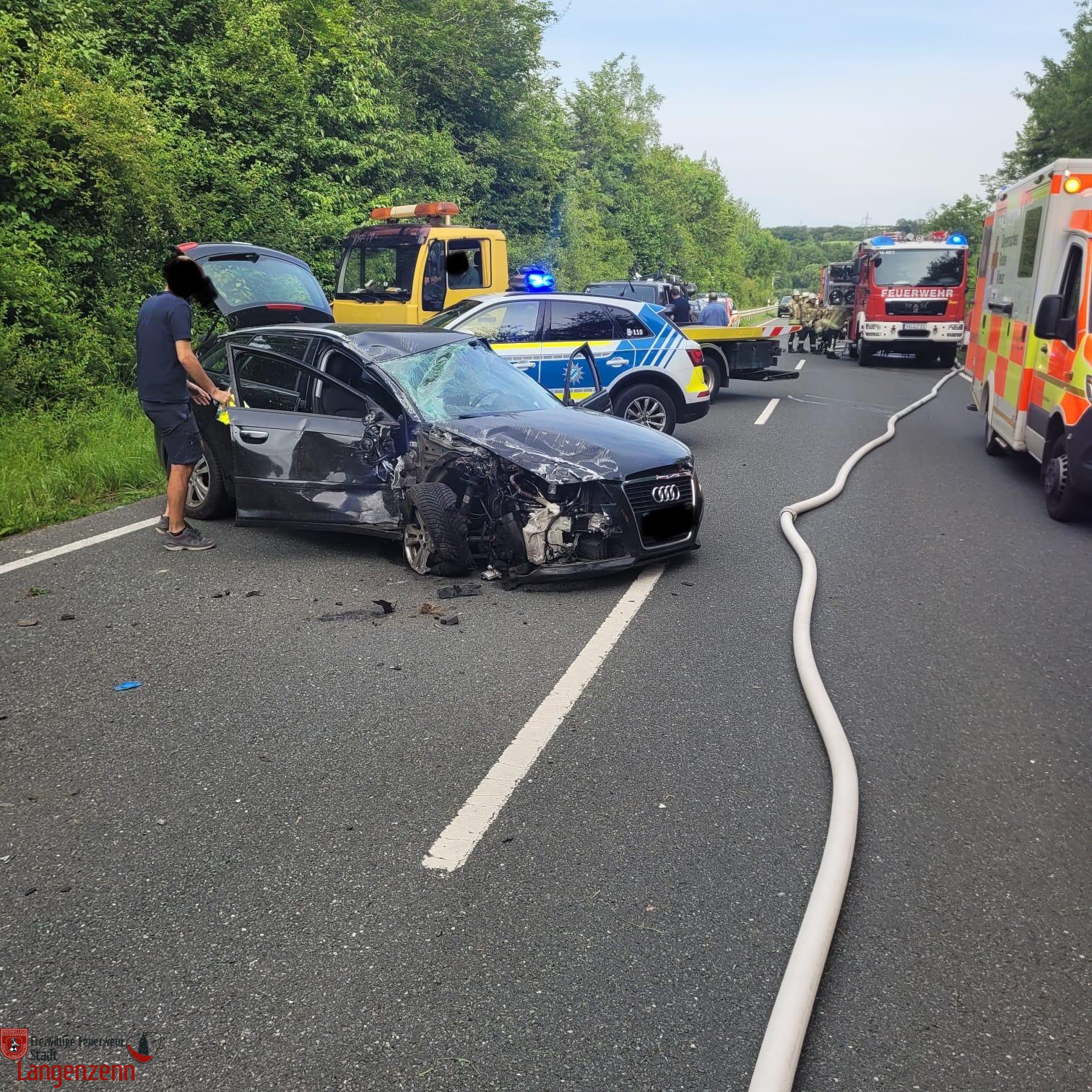 Verkehrsunfall zwischen drei PKW und einem Motorrad